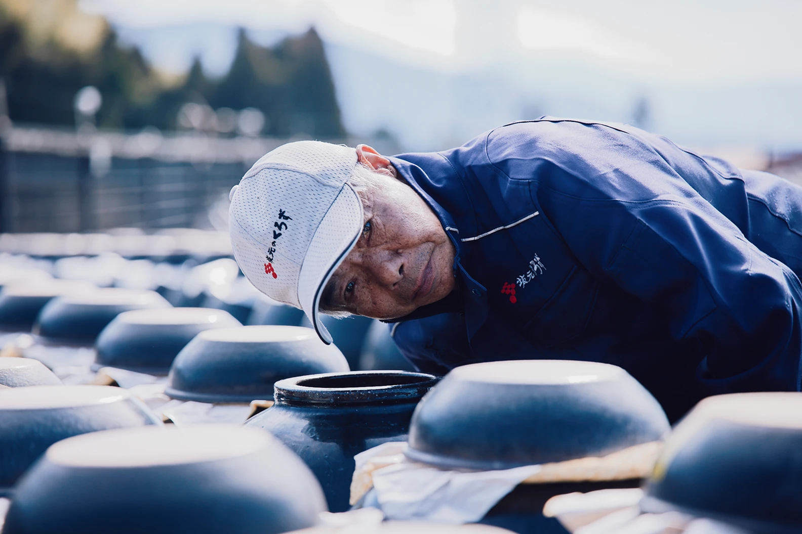 坂元醸造では、陶器の壺に米と麹と地下水を入れ、壺畑と呼ばれる場所で太陽の下にさらし、まるで農作物のようにお酢を作っています。そして修行を積んだ醸造技師が五感を働かせて毎日発酵と向き合うことで、数年経つと黒酢と呼ばれる独特のお酢が出来上がります。時間もコストもかかりますが長い目で見るとこの伝統製法が一番結果がよいそうで、深い味わいだけではなく健康効果が評判になり、日本全国にその名が広がりました。